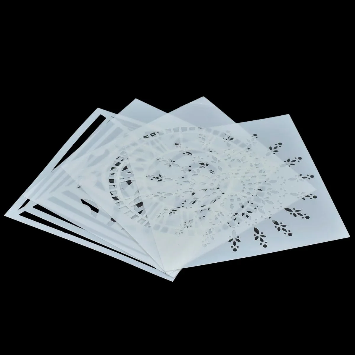 '- Combo pack of 4 Pcs painting stencils with various shapes and patterns.